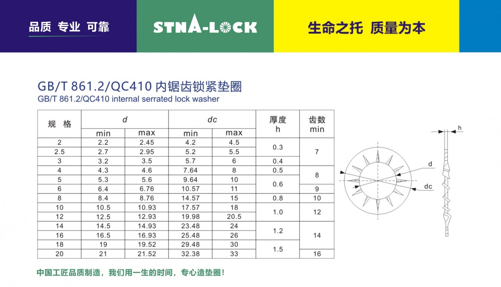 • 对应标准: GB 861.2-1987 内锯齿锁紧垫圈