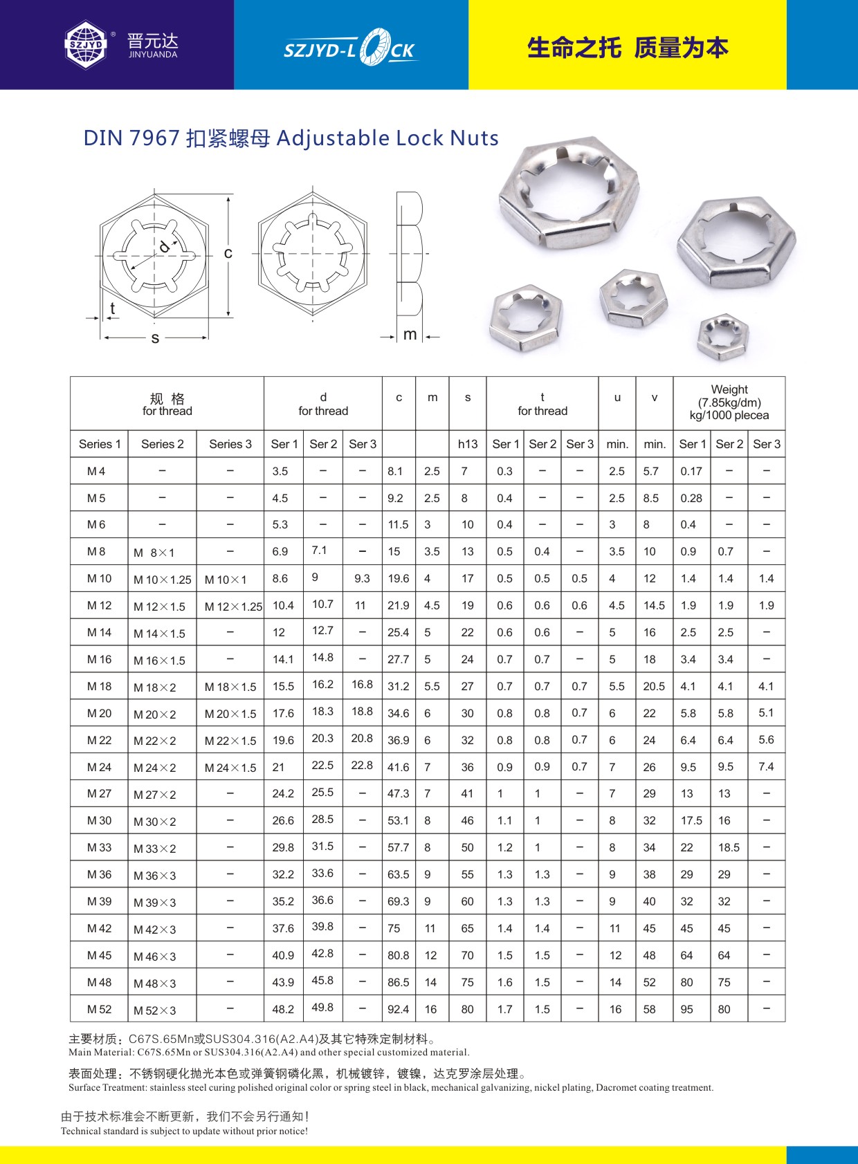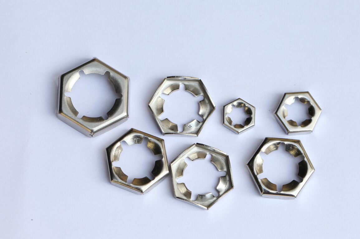 德国标准DIN7967扣紧螺母,SUS304/SUS316不锈钢扣紧螺母/等换EN1.4401/EN1.4301不锈钢扣紧螺母/级进模冲压生产工艺,为了保证扣紧螺母的锁紧性能,SZJYD品牌扣紧螺母的不锈钢材质都在进行弹性硬化处理!