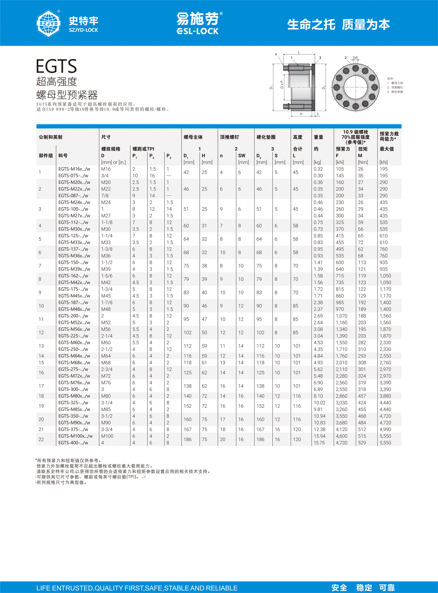 多顶推超级预紧器,可在很小空间安装,使用简单工具即可轻松预紧,节省安装时间,ESL-LOCK品牌易施劳超级螺母具有完全的防松锁紧功能,可多次拆卸重复使用。特别适用于M24规格以上大型螺栓锁紧!一拧永固,永不松动!使用常规格为合金材料及特殊不锈钢合金材料以及镍基合金材料!更多了解欢迎咨询我们.....