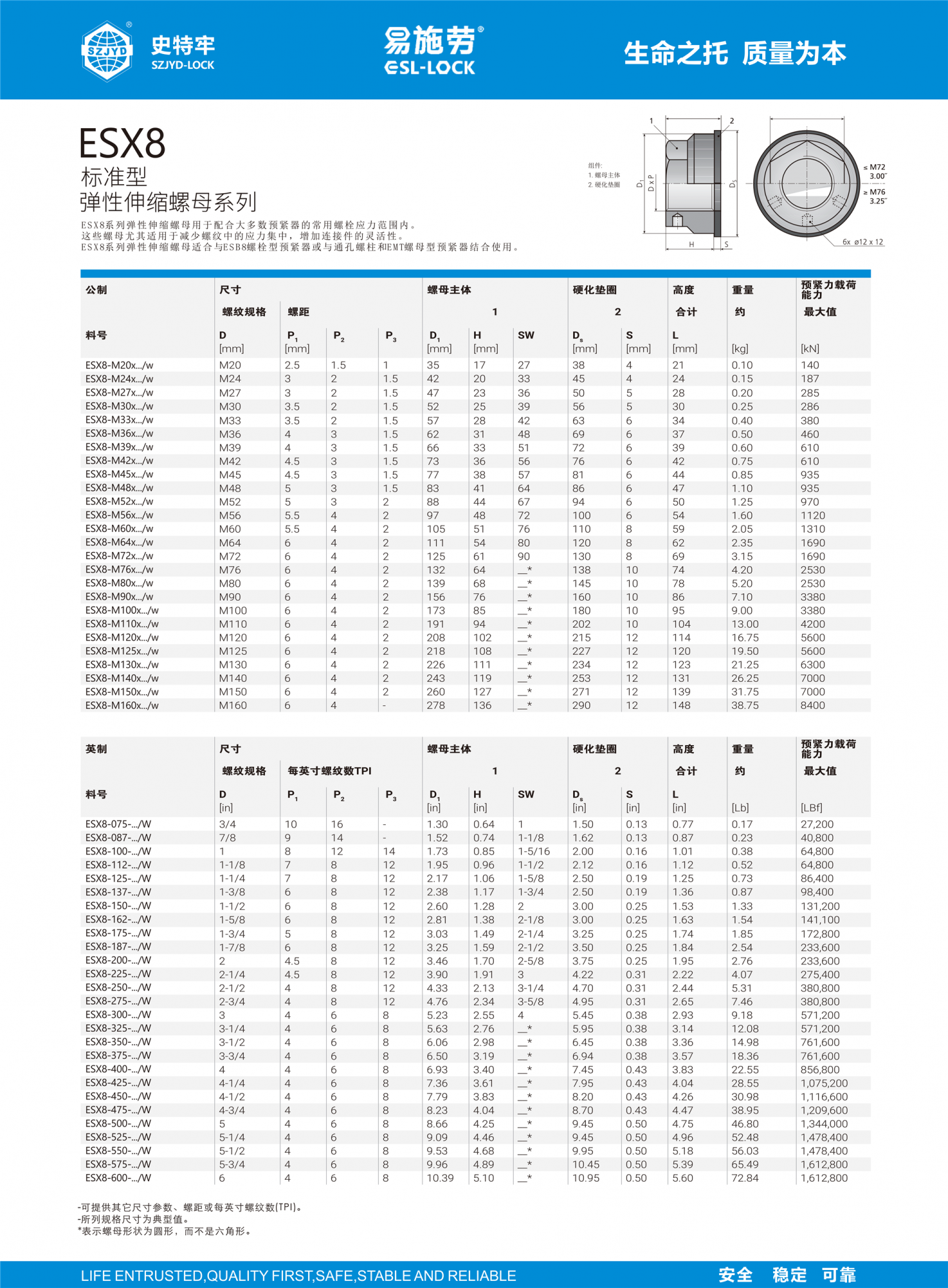 多顶推超级预紧器,可在很小空间安装,使用简单工具即可轻松预紧,节省安装时间,ESL-LOCK品牌易施劳超级螺母具有完全的防松锁紧功能,可多次拆卸重复使用。特别适用于M24规格以上大型螺栓锁紧!一拧永固,永不松动!使用常规格为合金材料及特殊不锈钢合金材料以及镍基合金材料!更多了解欢迎咨询我们.....